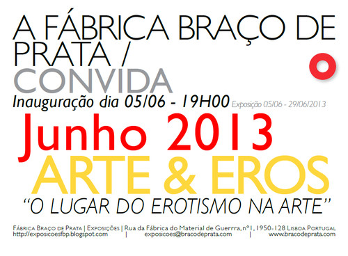 01 de Junho, 2013 ARTE & EROS na Fabrica de Braço de Prata Seleccionada para participar na ARTE & EROS na Fábrica Braço de Prata. link do postcomentar favorito